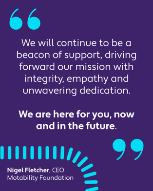 For all of us at Motability Foundation, our focus has remained steadfast: to champion the freedom and independence of disabled people.
